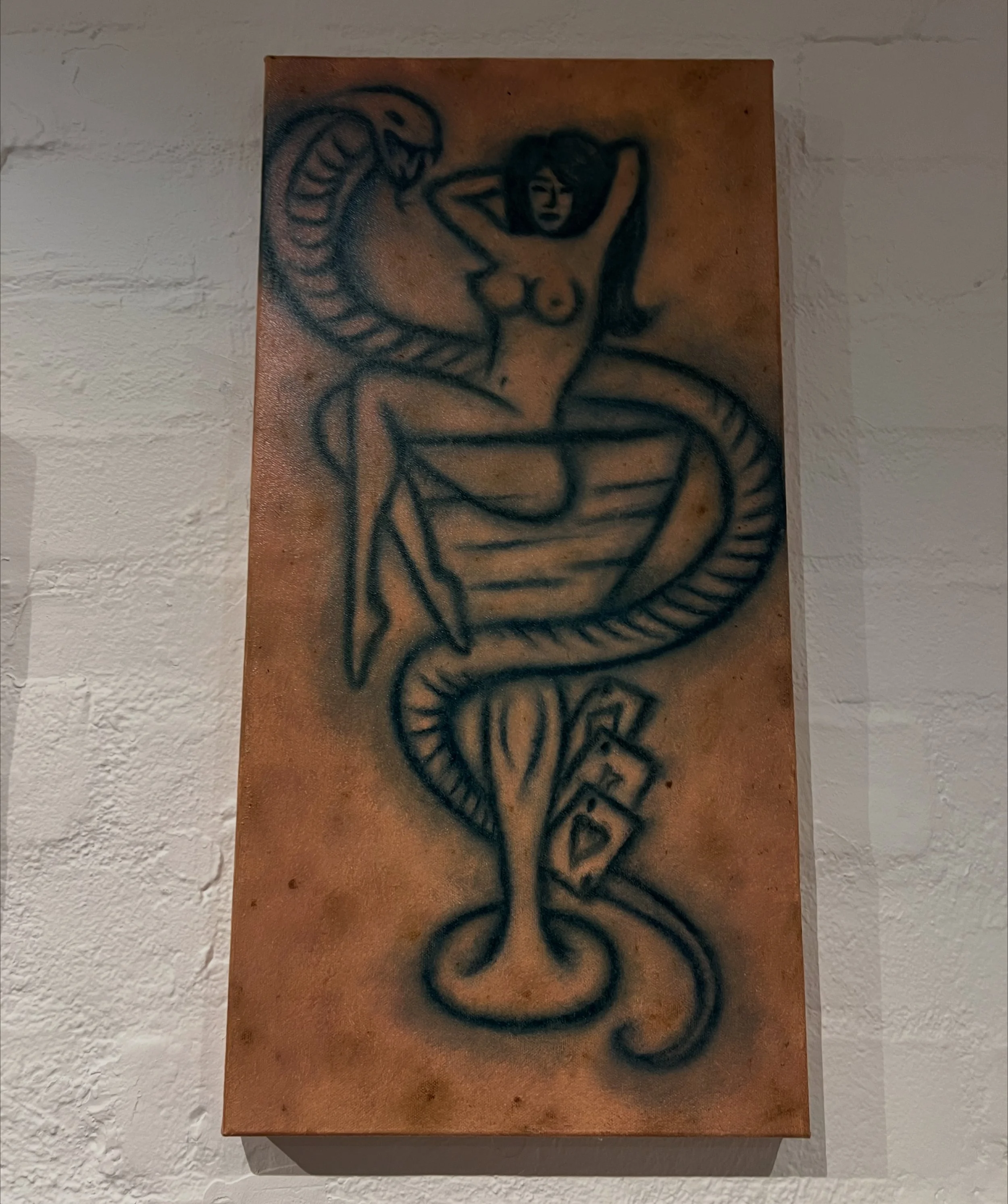 There is a deep desire to understand others and their tattoos, and through this, confusion and rejection takes root. With these “Skin Graft” paintings, the skin is separated from its body. It is separate from its projections. You’re invited to look with childlike curiosity; without an opinion, to see the beauty, to let the symbols wash over you, to feel the pull of the skin, to listen to the stories it tells without speaking.